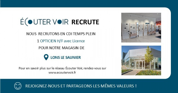 Nous vous proposons un poste d’Opticien(ne) en CDI à temps plein, 34h45 par semaine, poste à pourvoir en Juillet 2026 sur notre magasin qui vient d’emménager dans ses nouveaux locaux spacieux et lumineux au 43 Avenue Camille Prost à Lons le Saunier.